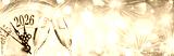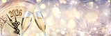 2026 - New Year Celebration With Champagne And Clock - Toast With Flutes - Abstract Defocused Bokeh Lights