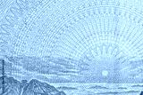 Extreme Macro Detail of Chinese Yuan Banknote Security Pattern Showing Abstract Sunrise Design