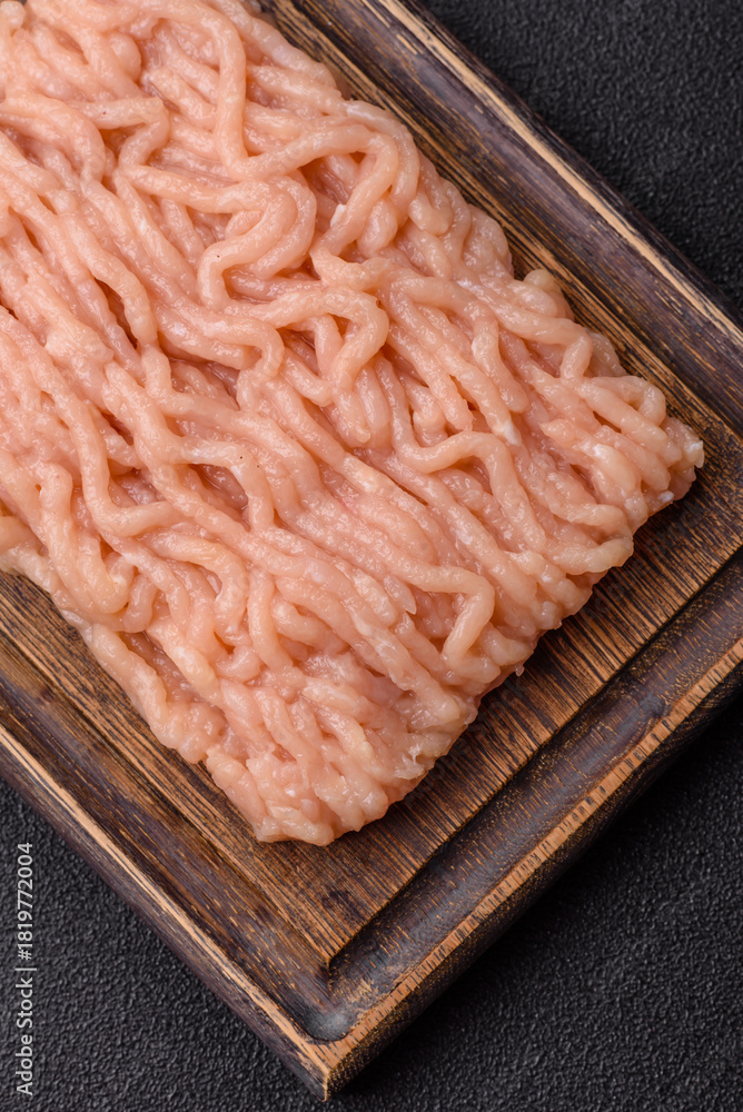 Raw ground chicken for burgers and other food. Raw minced chicken meat