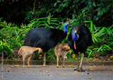 Family of Southern Cassowaries on the Atherton Tableland, North Queensland, Australia.