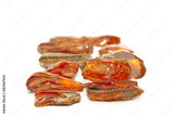 Amber red in perspective with a bokeh effect on a white background. Amber background and texture. Background for jewelry stores and advertising jewelry. Sunstone is a natural jewelry mineral. Red