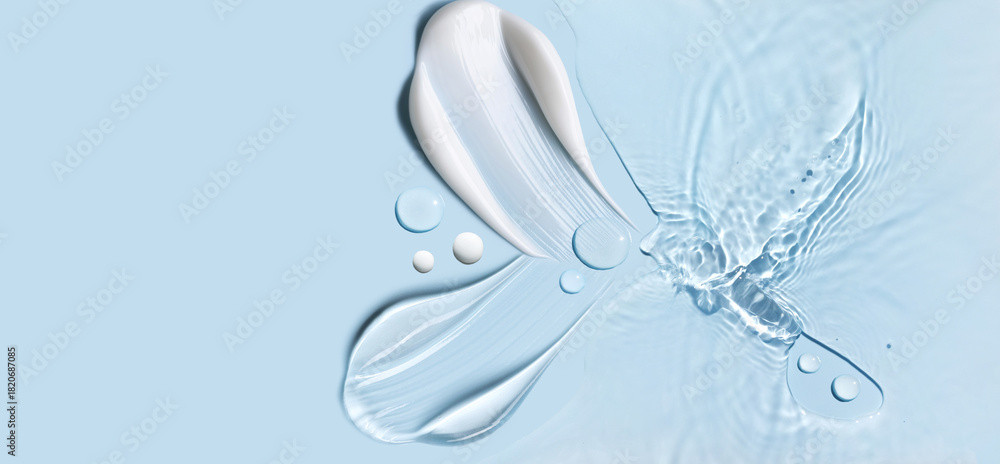 cosmetic cream smears, smooth and shiny texture, water texture ripple wave clean transparent water drops abstract blue background