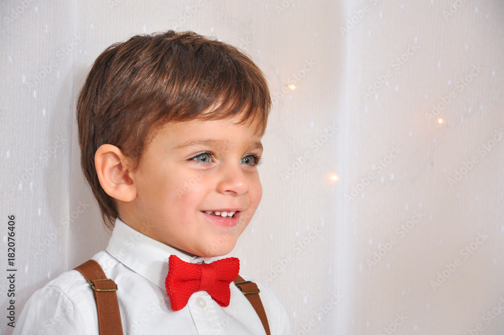 Child with bow tie waiting a New Year. Portrait of a happy boy