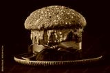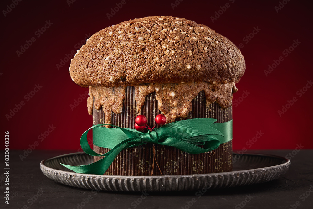Christmas Italian cake panettone,traditional sweet bread on holiday background
