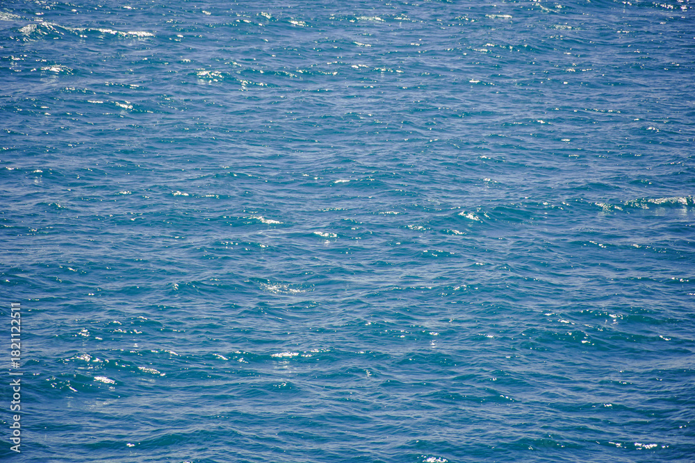 Sea wave texture close up. Dark blue water surface with ripples background. macro blue wave pattern in a river with motion blur. Sparkling sunlight reflecting on the surface of a calm.