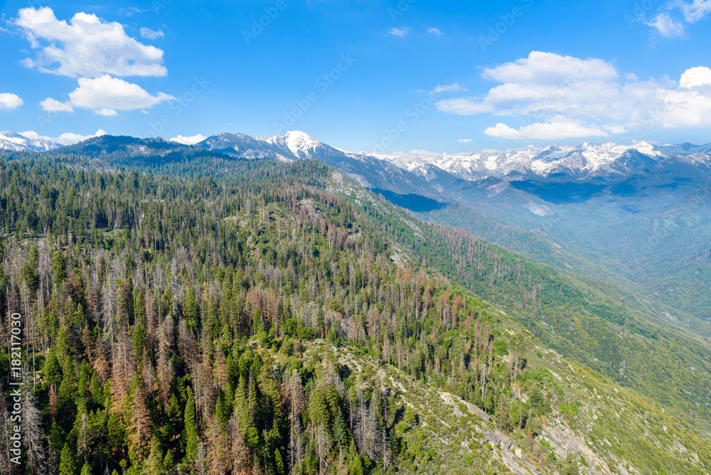 The amazing view from Moro Rock to Sierra Nevada, Mount Whitney. Hiking in Sequoia National Park, California, USA