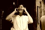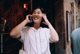 Woman laughs while on phone call, evoking spontaneity, mobile confidence and the genuine joy of digital voice interaction in casual real-life tech engagement.