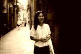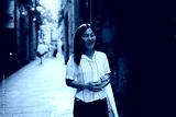 Asian woman stands outdoors holding phone, showing readiness, personal agency and digital ease, connecting calmly with technology in a moment of real-world stillness.
