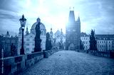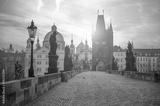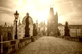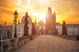 Scenic view of Charles Bridge (Karluv Most) and Lesser Town Tower Prague symbol at sunrise, Czech Republic
