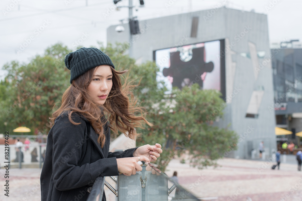 Portrait of Asian women travel in Melbourne the most liveable city in the world of Victoria state of Australia.
