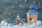 Burning latern and christmas decoration