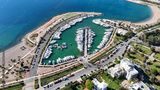 Aerial drone photo of famous luxury South area of Glyfada capital's best-known nightclubs, upscale restaurants and shops, Athens Riviera, Attica, Greece