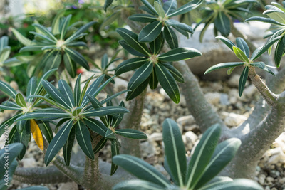 close up of pachypodium rosulatum plant from madagascar on stone ground