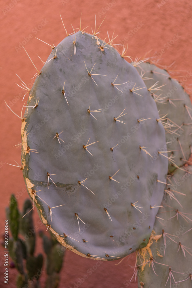 cactus close up in front of red wall