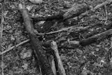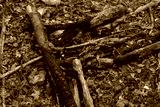 firewood on fire place in forest with ash and coal