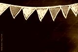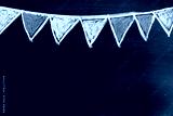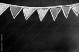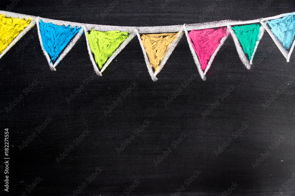 Colorful chalk drawing in hanging party flag shape on blackboard background
