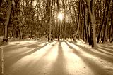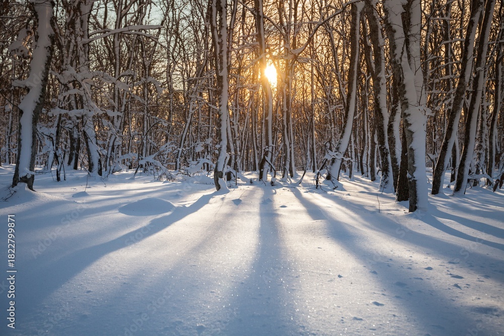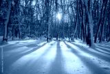 Winter frost landscape. Snow trees.