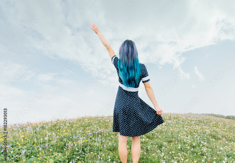 Woman waving her hand outdoor.