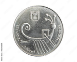 Israel ten sheqalim coin on a white isolated background