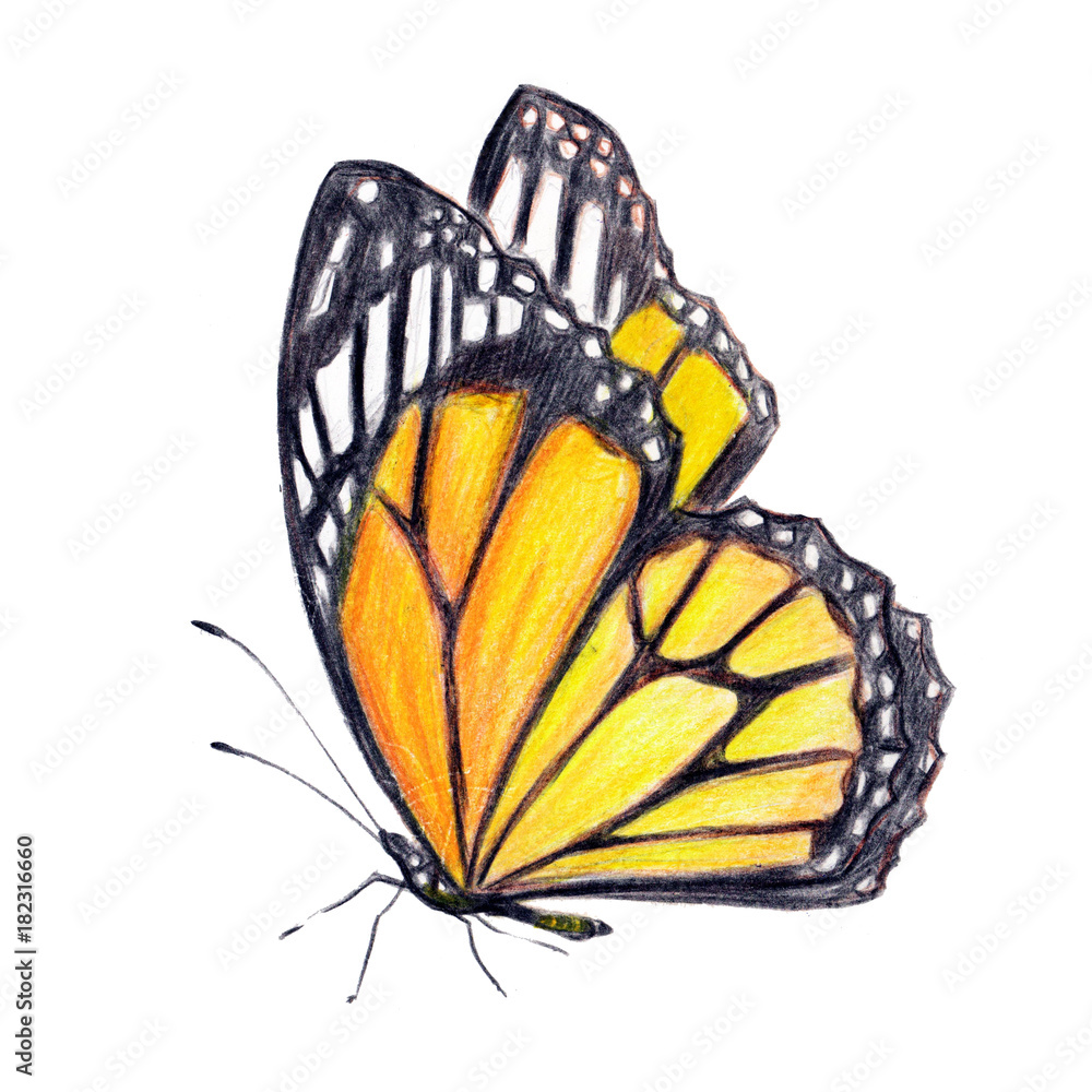 beautiful orange butterfly, isolated on a white