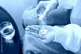 Sick asian young woman, girl holding tablet pill on hand pouring drug from medication bottle, painkiller medicine from stomach pain, head ache, pain for treatment, take drug or vitamin, health care.