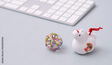 Horse zodiac and computer. beginning of work, the first workday of the year, business, Japan, etc. 干支の午(うま)とパソコン。仕事初め、午年の仕事、ビジネス, 日本など