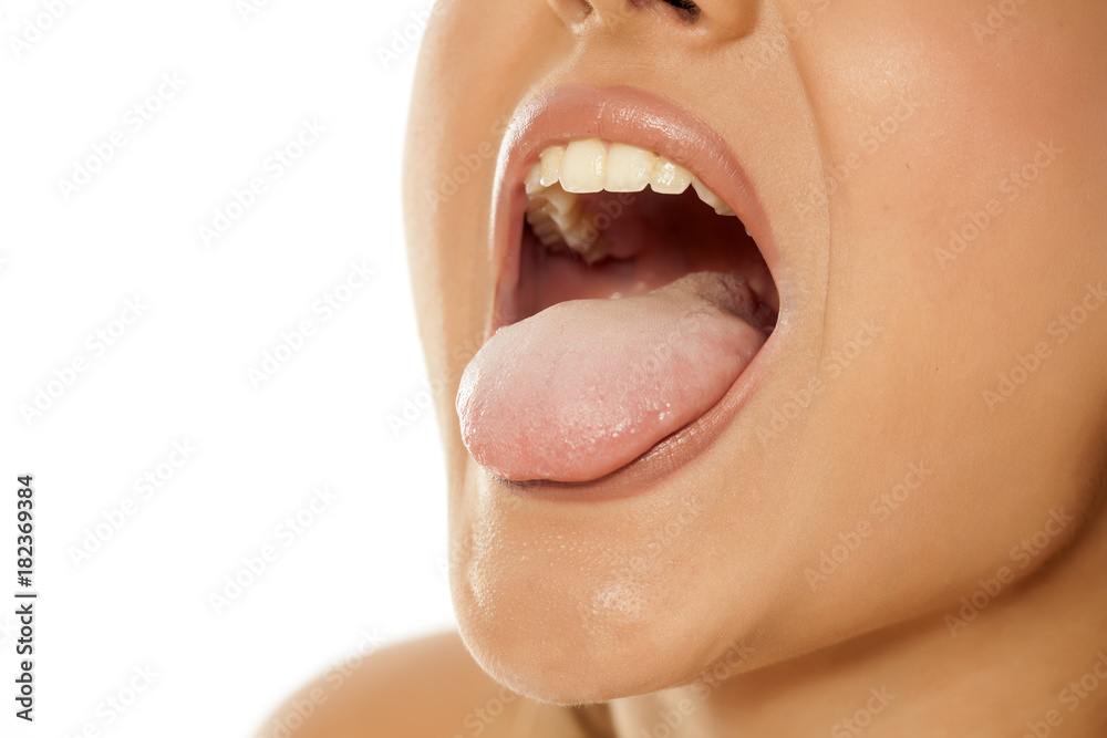 woman shows her tongue