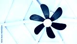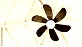 Vintage wooden ceiling fan on white roof structure