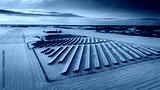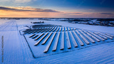 Snowy solar panels. Frozen solar panels in winter. Alternative energy.