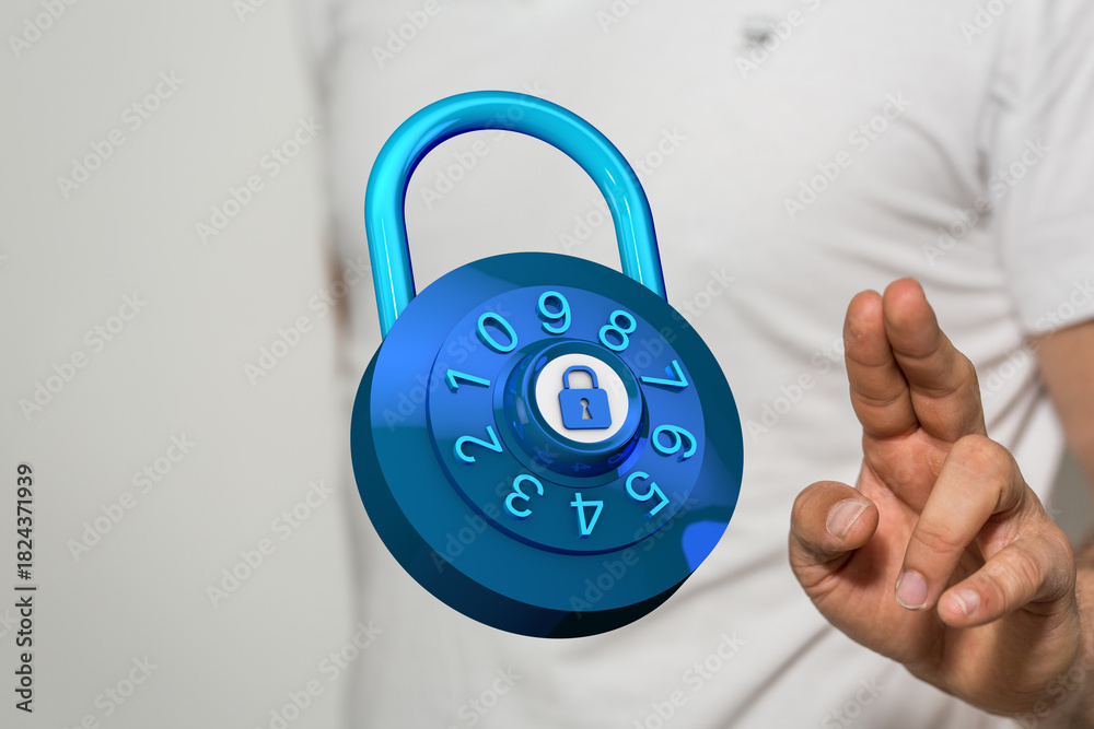 Secure digital data by using a combination lock, security and data privacy concept with person in the backgroun