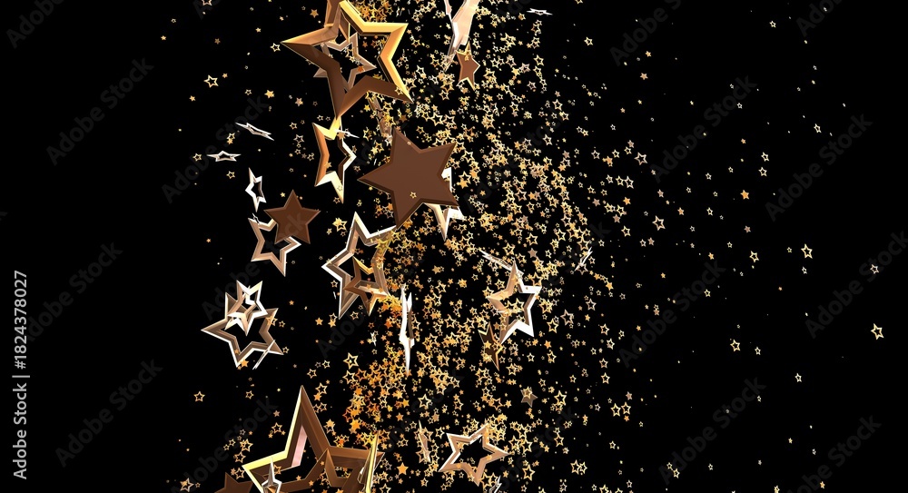 Abstract background of golden stars and sparkles on a black backdrop. Perfect for celebratory events, holiday themes, and ar