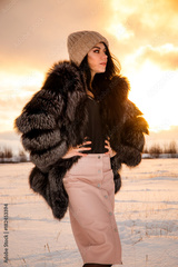 Girl at the background of a sunset