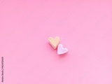 Soft pastel hearts on a clean pink background. Romantic and sweet composition ideal for Valentine’s Day creatives, social media content, greeting cards and festive promotions.