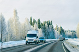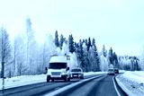 Minivan and cars in road in winter Rovaniemi