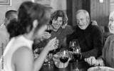 Multi-generation family discussing daily life while having fresh food and wine in restaurant