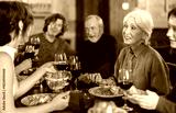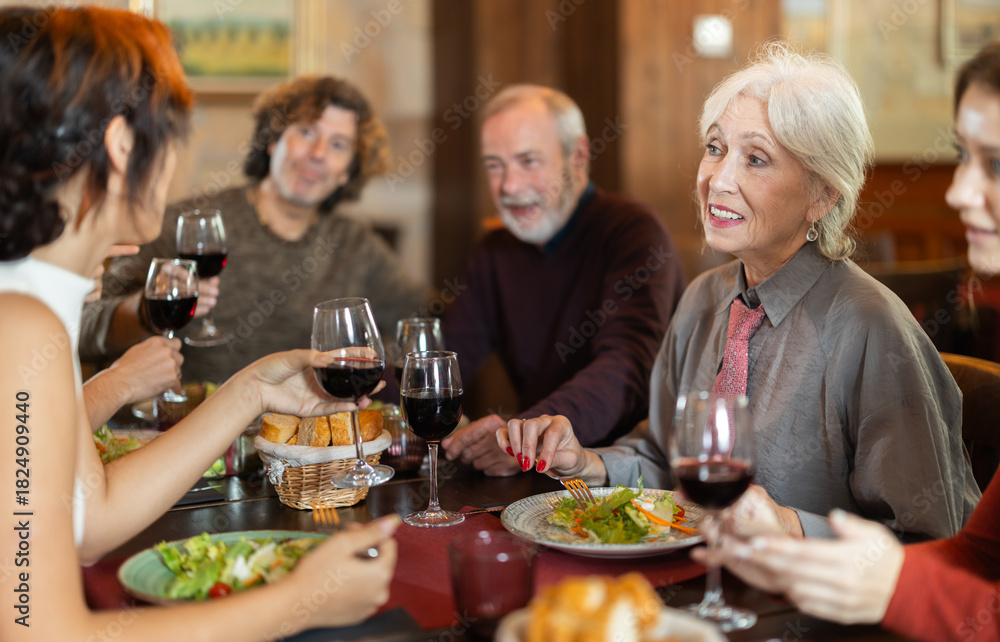 Multi-age group of people in restaurant. Organization of meetings, coffee breaks, and festive dinners.