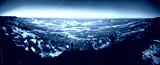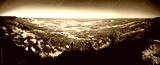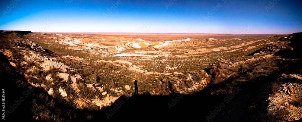 Panorama view to Aral sea from the rim of Plateau Ustyurt at sunset , Karakalpakstan, Uzbekistan