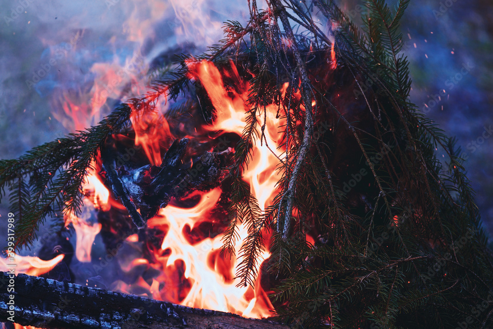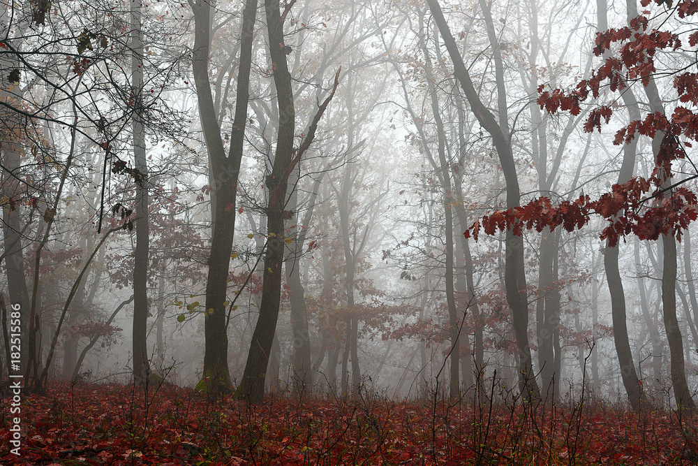 beautiful forest in misty morning