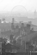 Foggy, autumn sunrise over Vieux Lyon, the old town of Lyon.