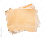 a collection of old papers isolated on white. shot with high angle view
