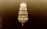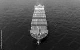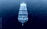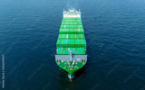 Green Cargo Container Ship, Cargo Container only green color. container ship running in the ocean to shipyard sea port. import shipping freight logistics. Concept green transportation environment