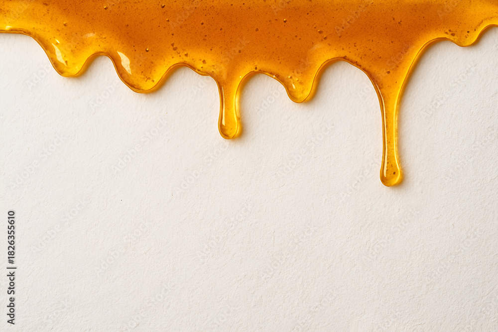 Thick golden honey or caramel syrup dripping down on a clean white background sweet dessert ingredient