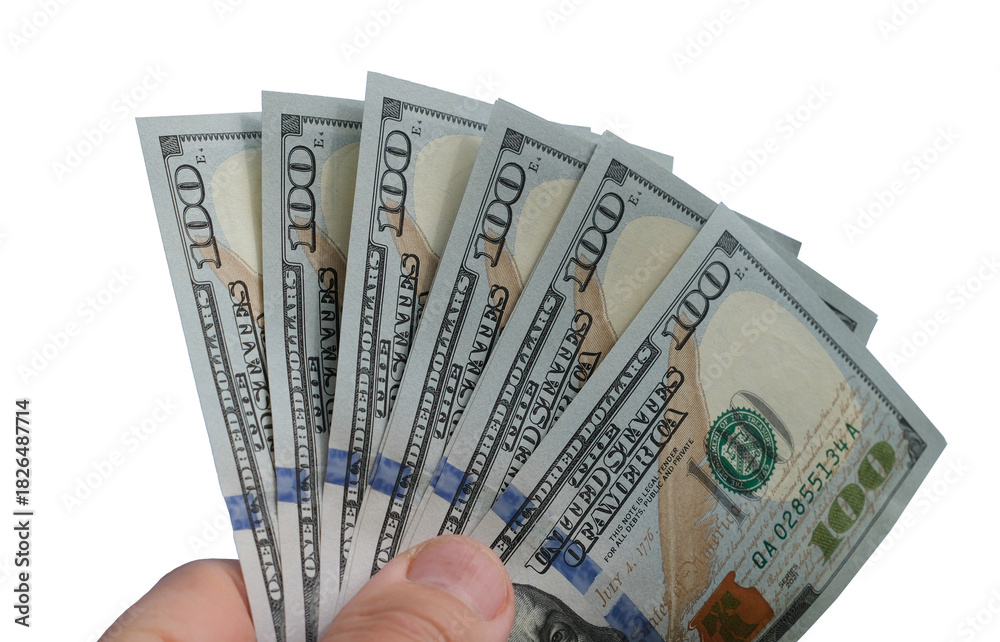 Person Holds Hundred Dollar Banknotes, Isolated. Money Transactions, Financial Goals, Control, and Wise Spending.
