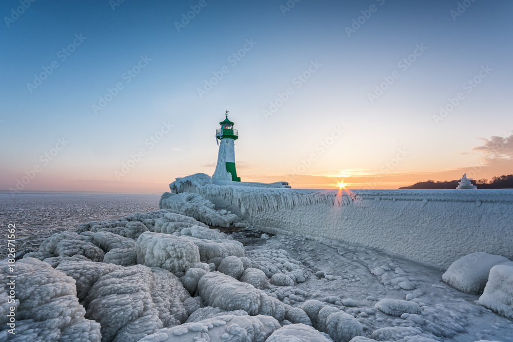Winter auf der Insel Rügen, Leuchtturm Hafen Sassnitz