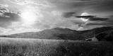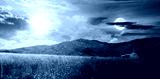 mountain landscape with haystack on the field. day and night time change concept. countryside scenery of Carpathians on summer solstice under the sky with sun and moon. duality and transition template