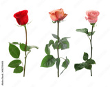Collection of beautiful roses isolated on white