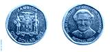 Jamaica one dollar coin on a white isolated background