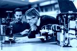 Young attractive students of mechatronics working on project