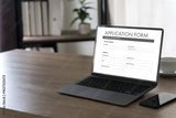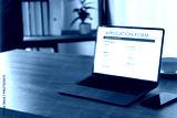 man working on laptop Online application form hiring employment searching job on website recruitment Employment Concept