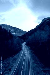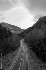 Winding Mountain Road Through Forested Valley in BC, Canada Landscape Scene